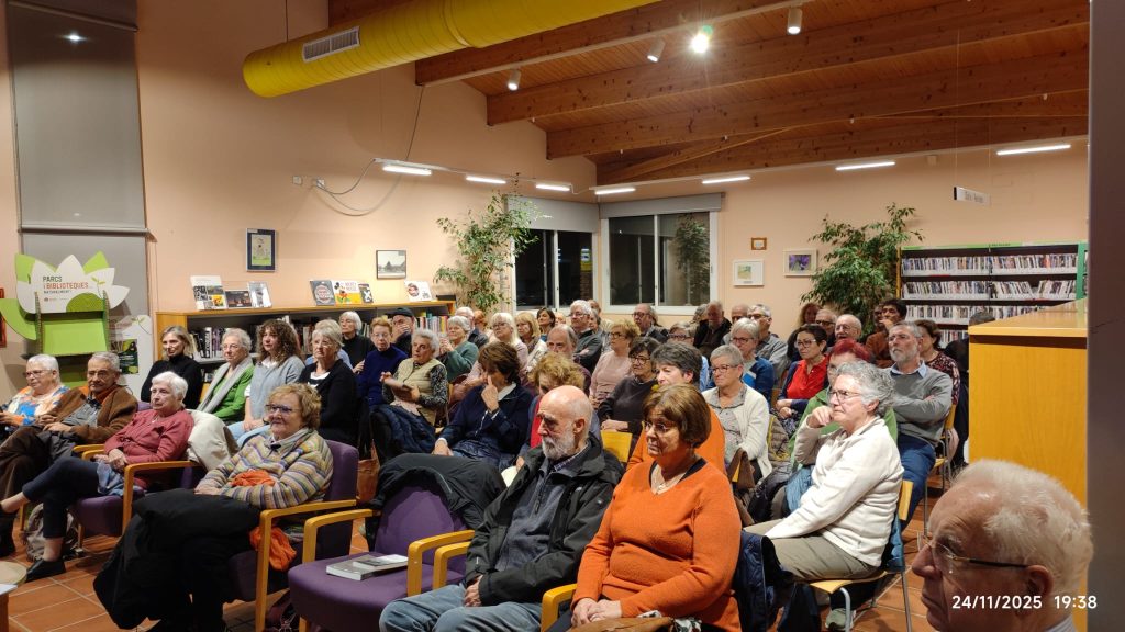 Més de 60 persones van omplir la biblioteca Ferran Soldevila per escoltar la xerrada “Història, natura i espiritualitat: el monestir de Montserrat i mil anys de presència benedictina a la Santa Muntanya” a càrrec de Diego Sola organitzada per ISVAT.